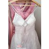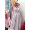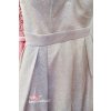 Barva: decentní jemná pastelová barva + stříbrný třpyt po celých šatech