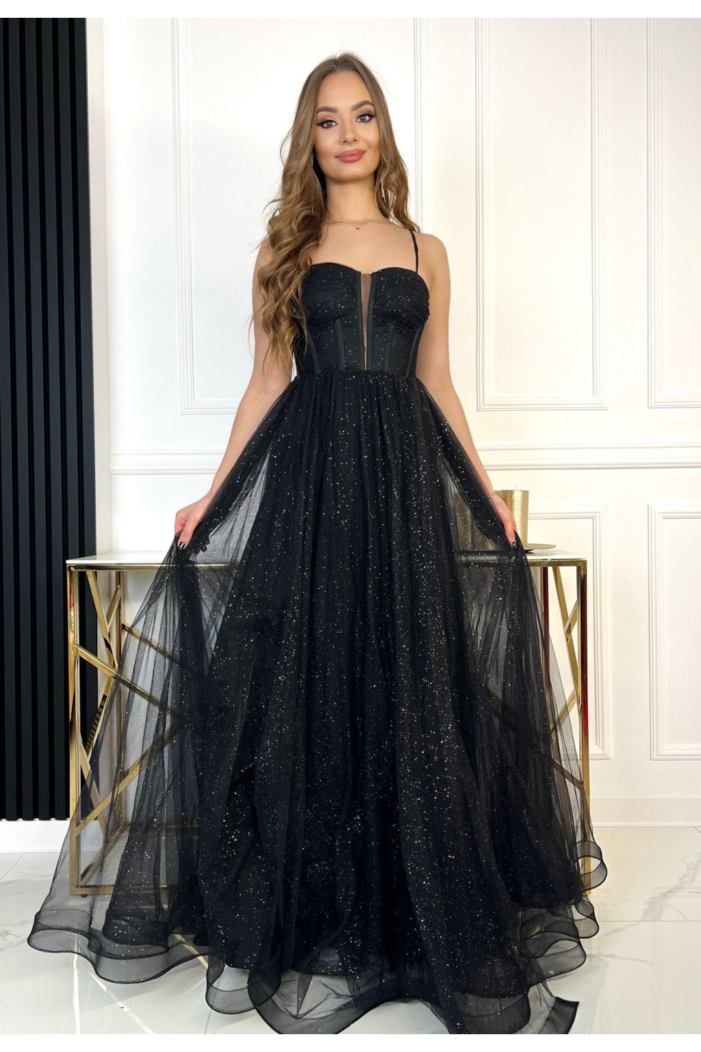 Černé plesové třpytivé večerní šaty Camille
