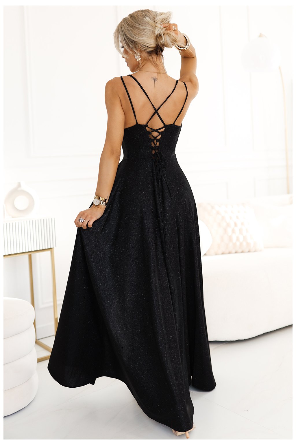 Černé třpytivé společenské šaty Sparkle s rozparkem