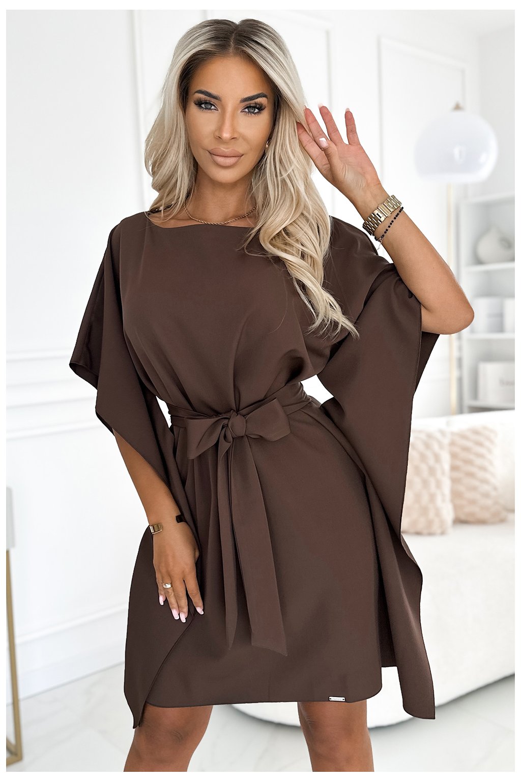 Čokoládově hnědé společenské šaty Sofia s páskem
