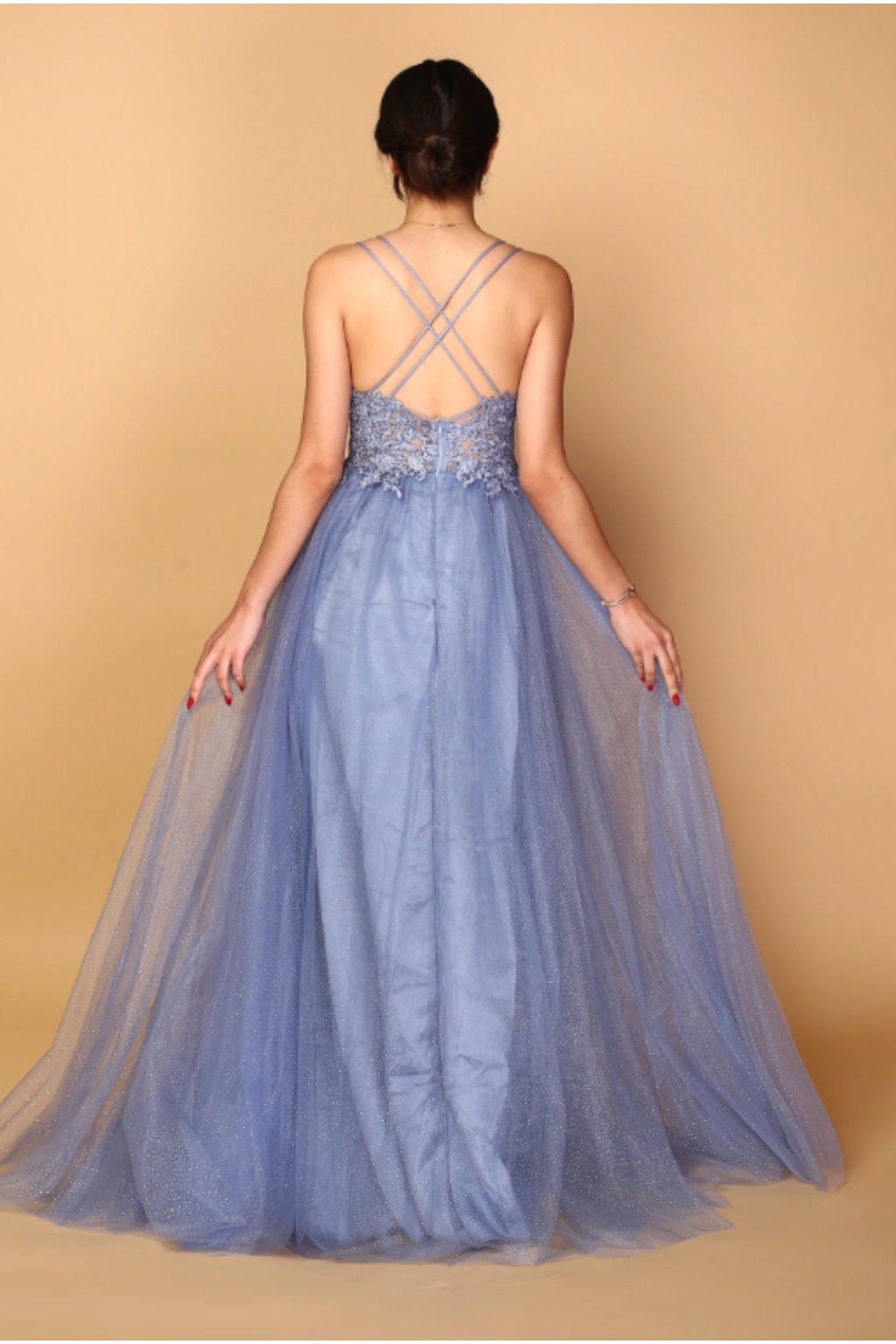 Modré třpytivé plesové šaty Paris na maturitní ples s nadýchanou sukní