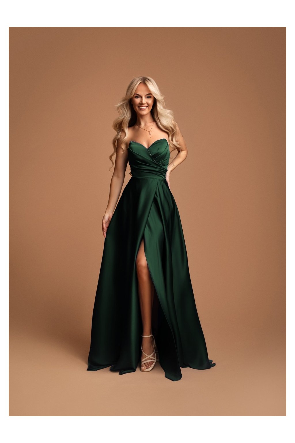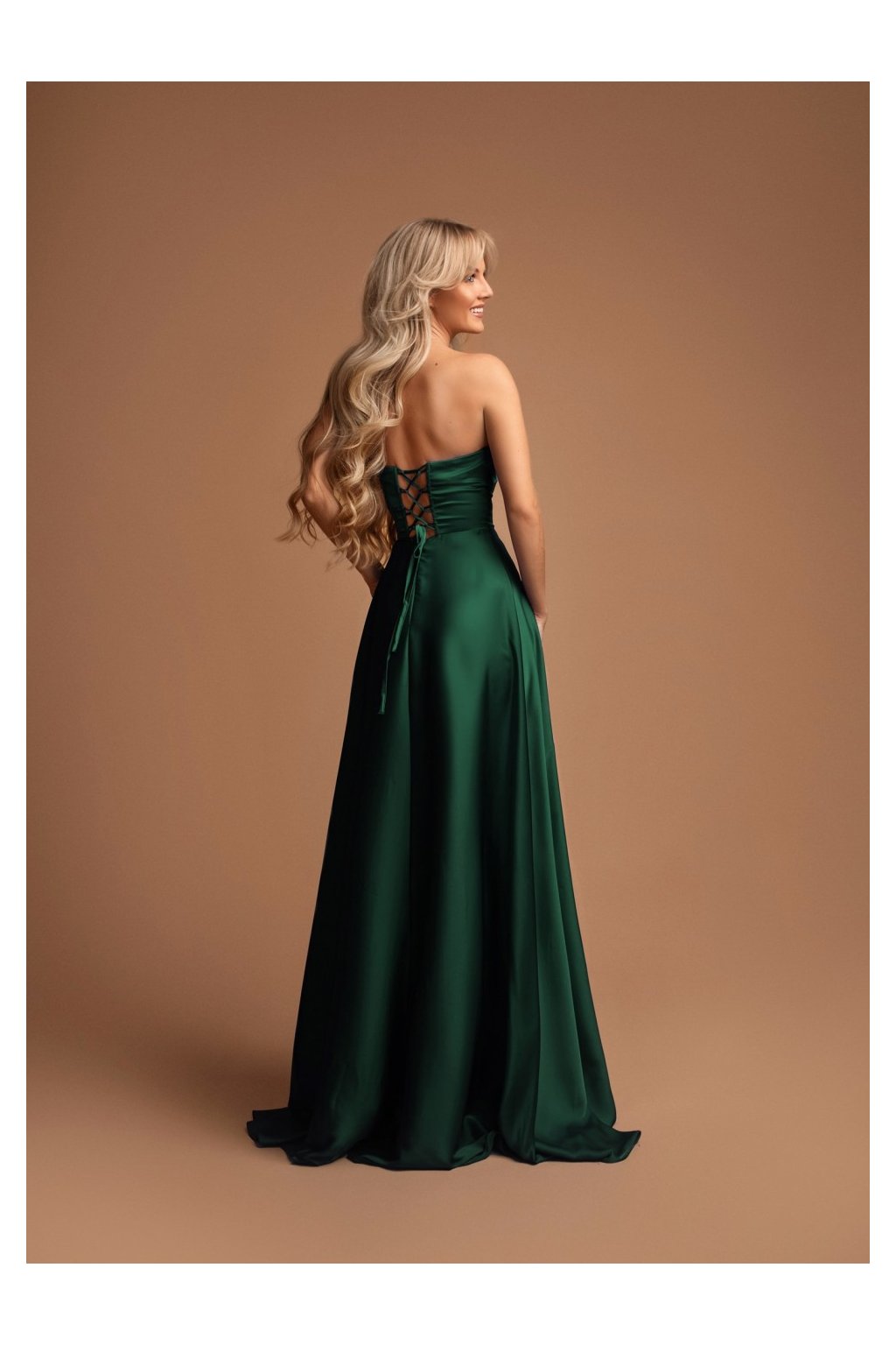 Zelené saténové společenské šaty Elisabeth s rozparkem