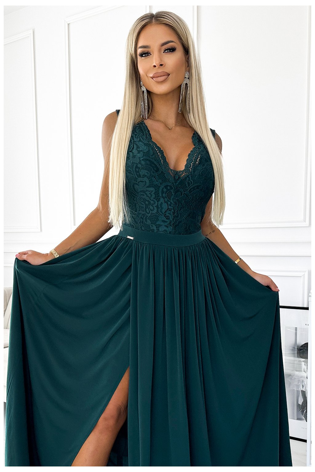 Zelené společenské šaty Lea s rozparkem