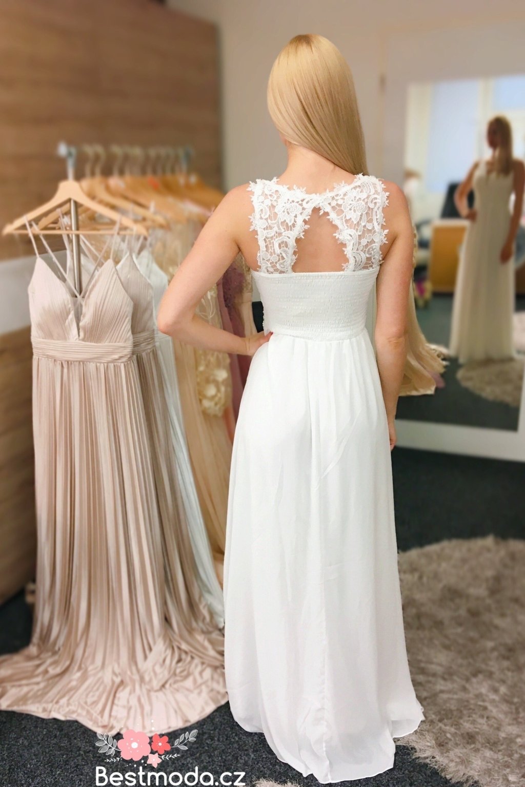 - šaty mají elastická záda, díky kterému se přizpůsobí Vaší siluetě, šíři ramen i objemu dekoltu