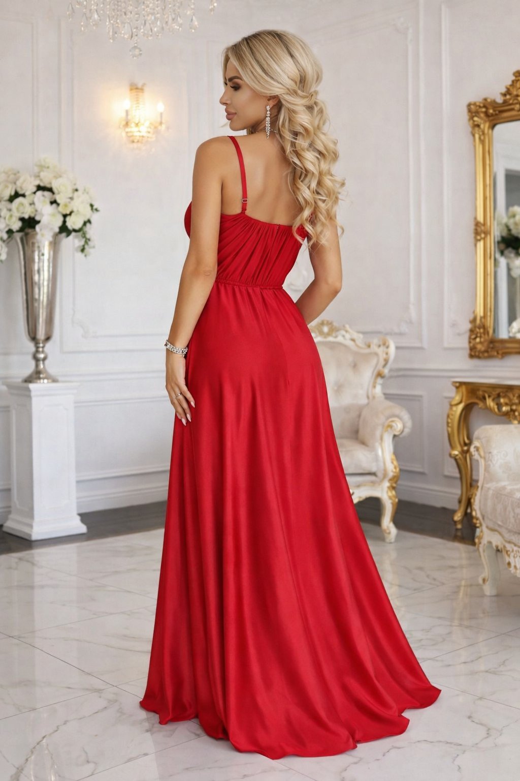 Červené společenské šaty Natalie s rozparkem na plesy a eventy