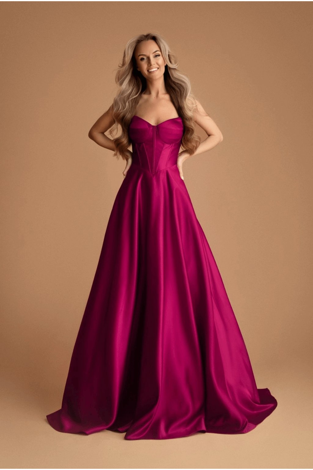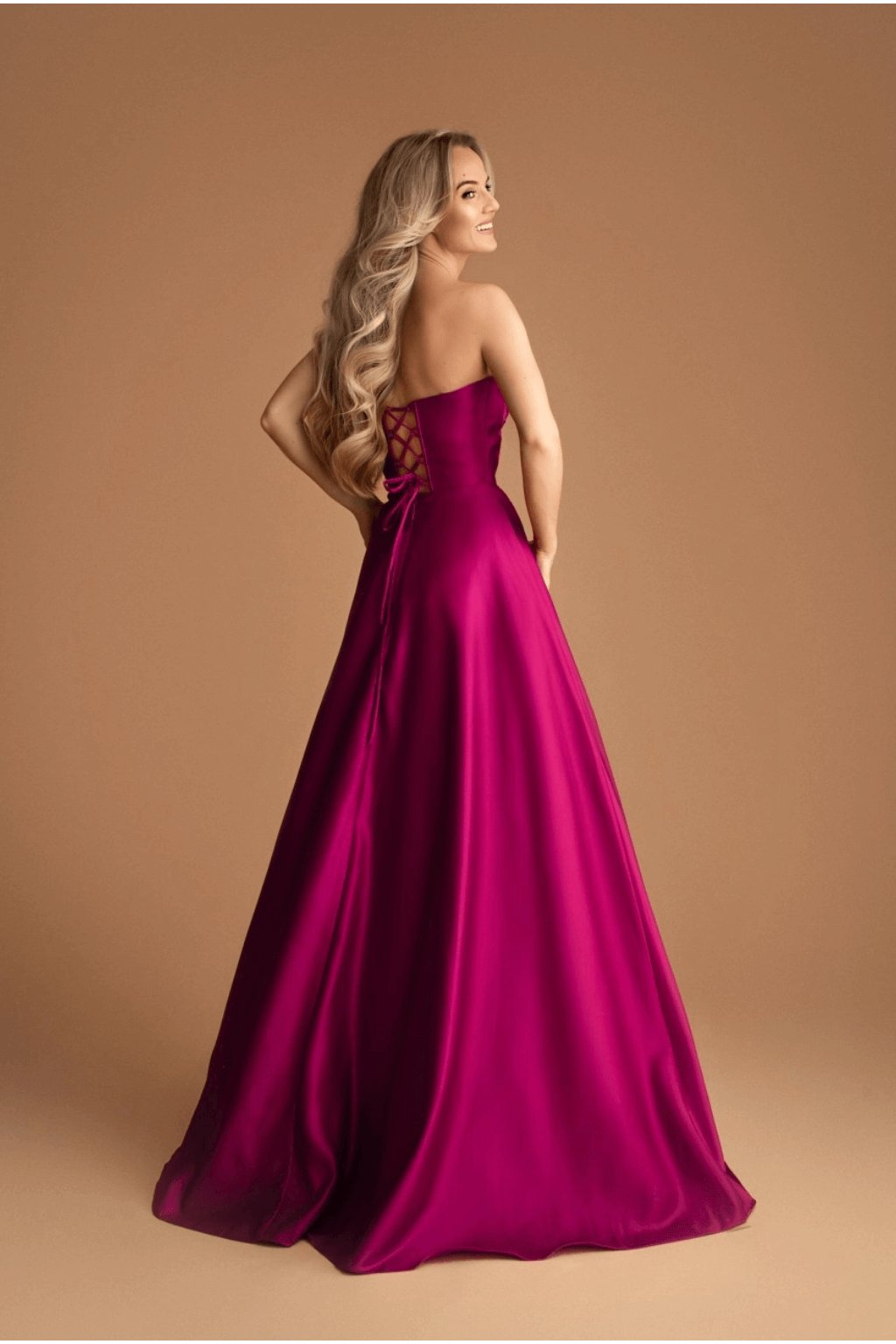 Fuschia růžové společenské saténové šaty Ruth na plesy