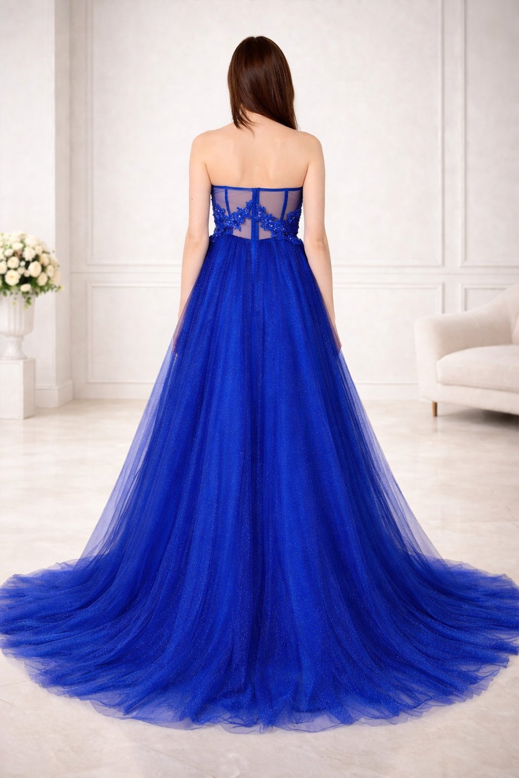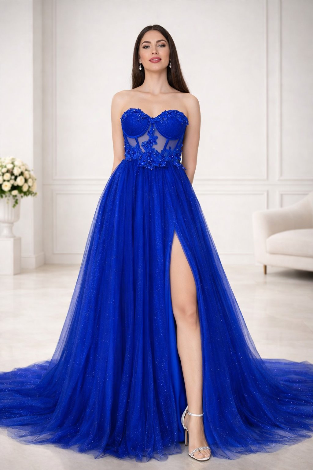 Královsky modré plesové šaty Adoria s nadýchanou třpytivou sukní
