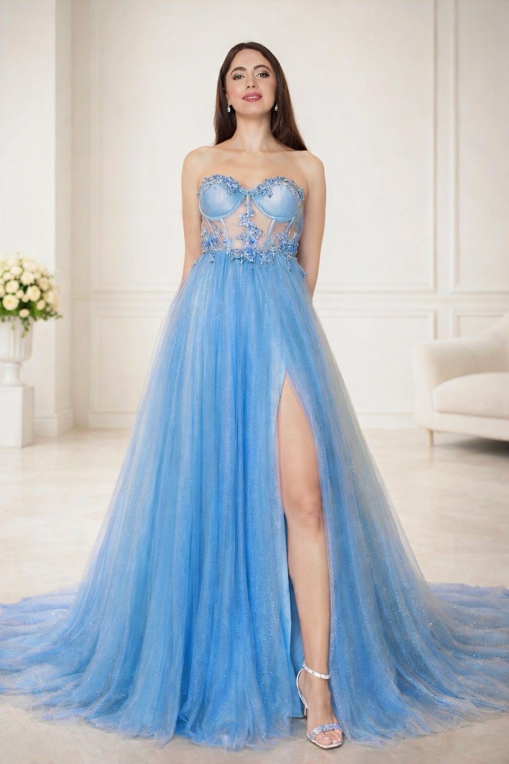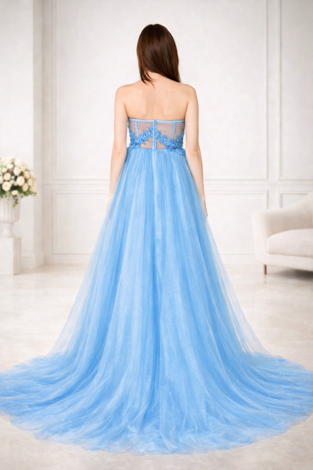 Modré plesové šaty Adoria s nadýchanou třpytivou sukní