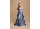 Světle modré dlouhé společenské šaty Queen s rukávy