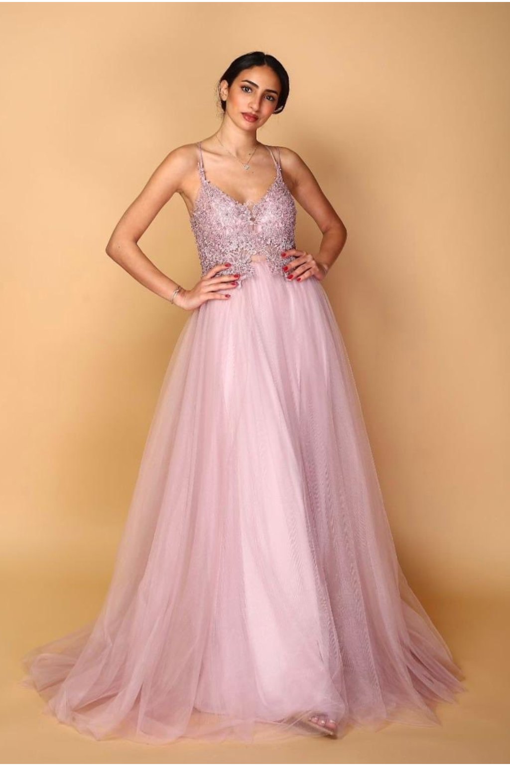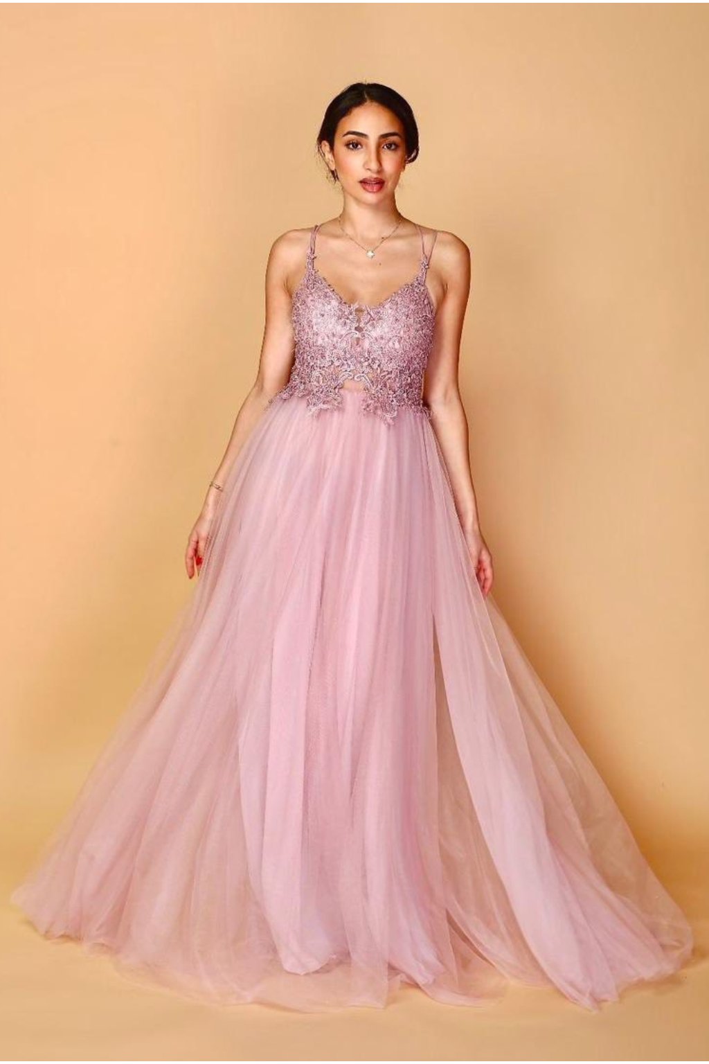 Světle růžové společenské šaty Perla z francouzské kolekce