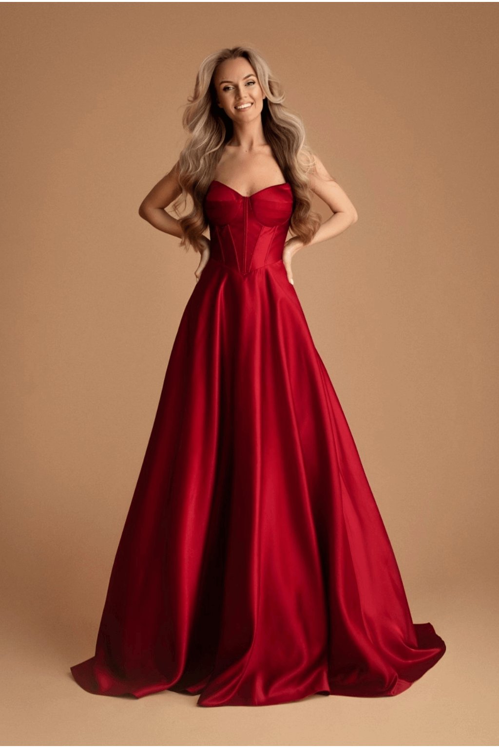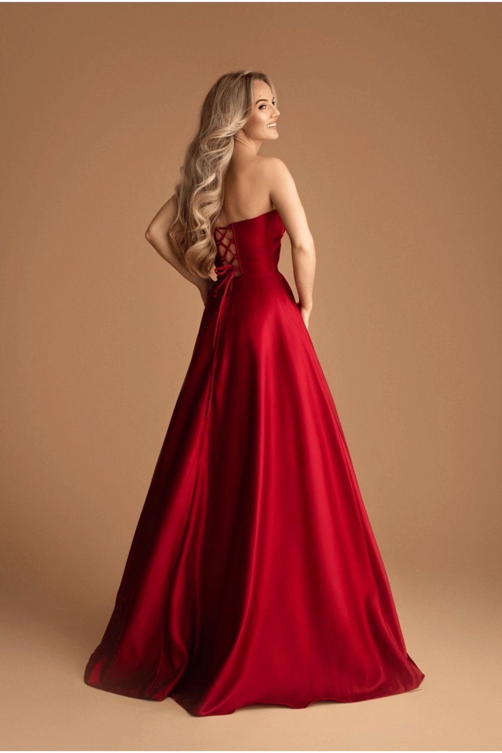 Dlouhé společenské šaty, novinka na sezónu 2025/2026 v krásném nadýchaném provedení, trendy střihu s pasem do obrácené špičky a šněrováním na zádech. Právě díky šněrování si šaty na zádech a v dekoltu přizpůsobíte přesně podle Vaší postavy.