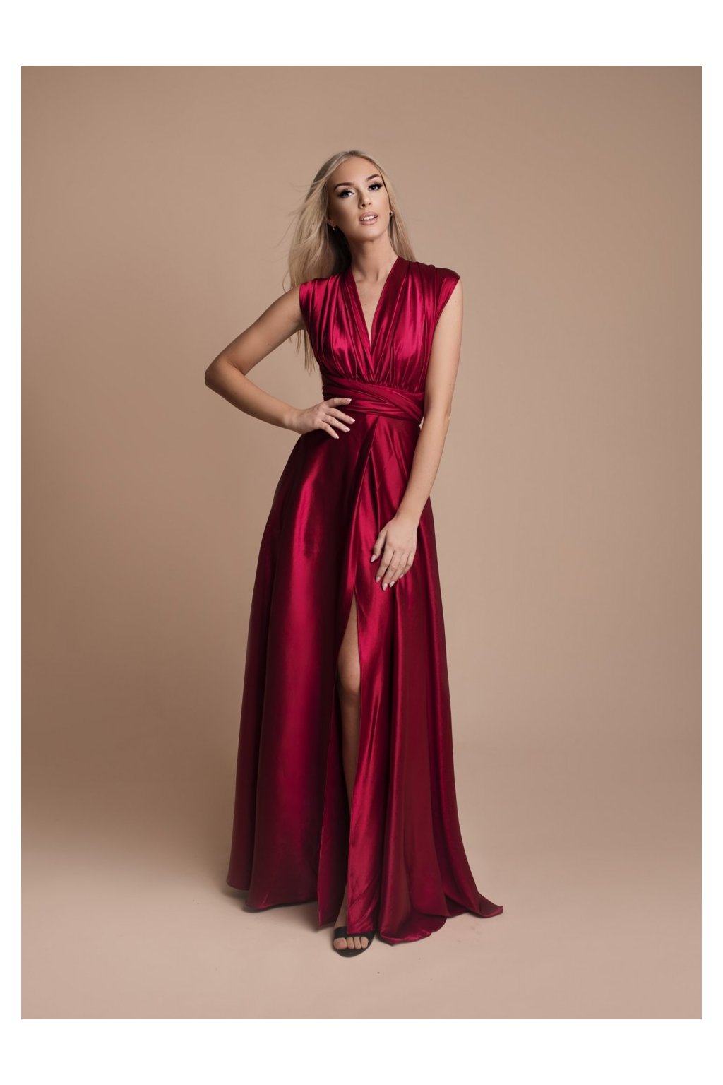 Vínové společenské plesové šaty s rozparkem z francouzské kolekce EVA & LOLA