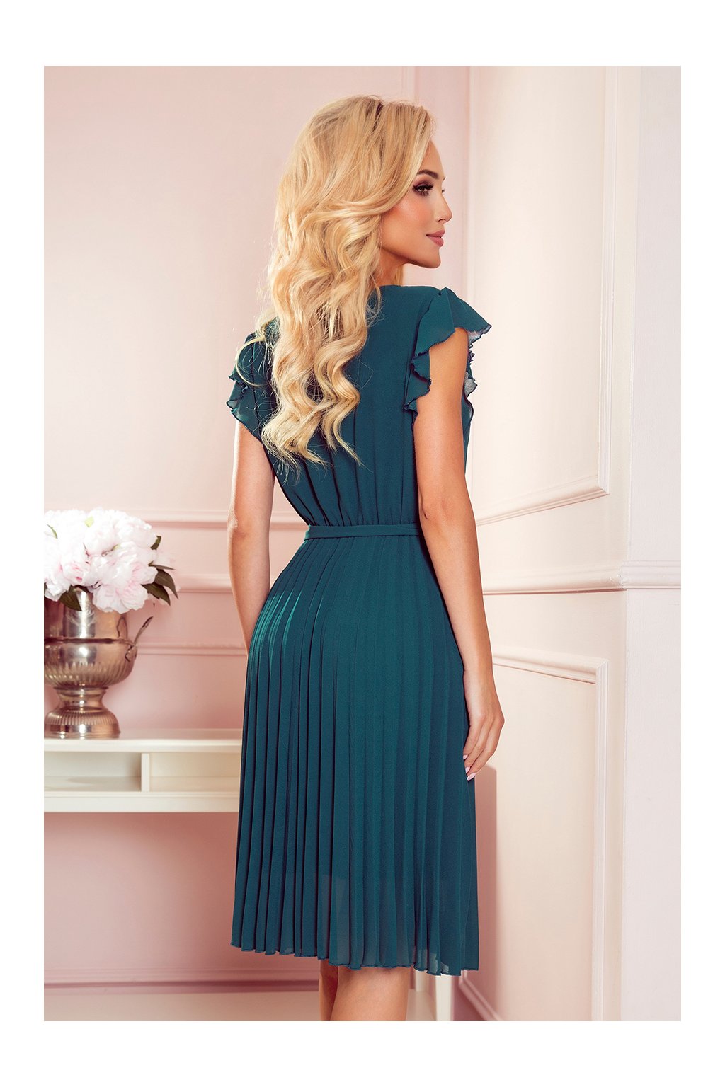 Zelené společenské šaty Paula s plisovanou sukní